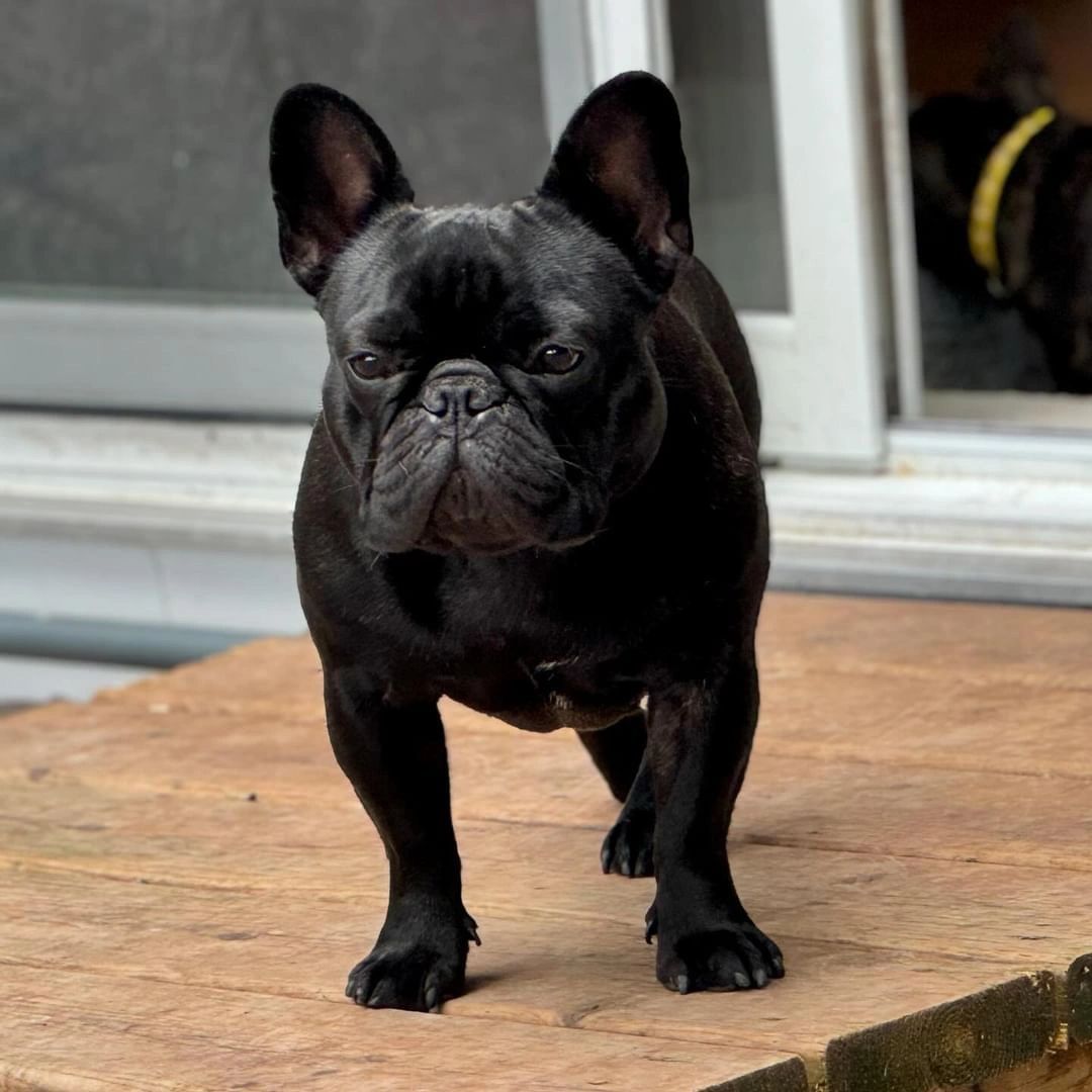 Ledger is came to us from iFrenchi in the US. He is a 'robust' black brindle out of GRCH iRoyal x Stitch. He is very 'correct' and heavily brindled. This mellow fellow loves affection, food and the ladies.